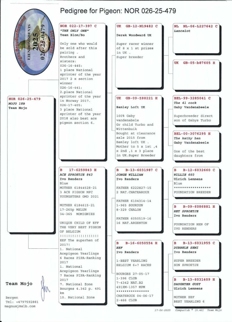 Owner: Team Mojo - A (233º Final / Ace Pigeon:122º)