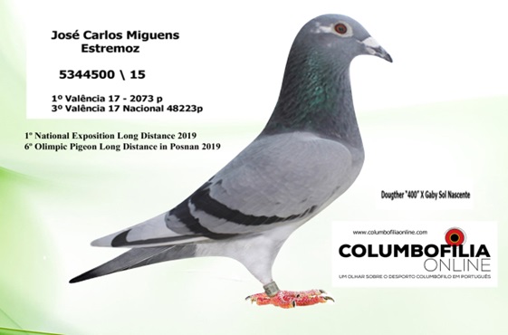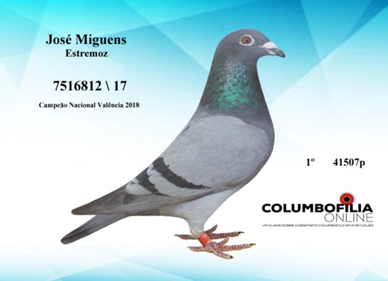 O 7516812/17 é fruto de um cruzamento entre a linha José Miguêns x Santa Barbara Pigeons, sendo o pai do vencedor da prova de Valencia neto do Casal Base (400x244), por sua vez cruzado com uma neta do “30.000” Santa Barbara Pigeons.