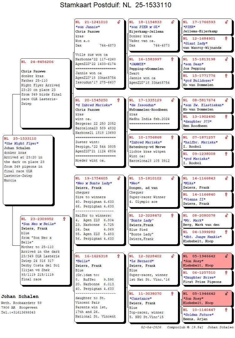 Owner: Team Schouten (35º Final / Ace Pigeon:50º)