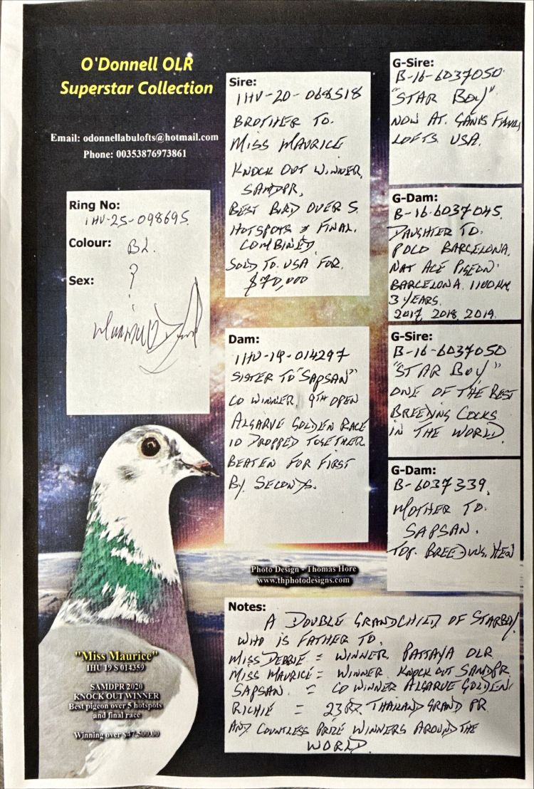 Owner: Maurice O"donnel 4 (83º Final / Ace Pigeon:---º)