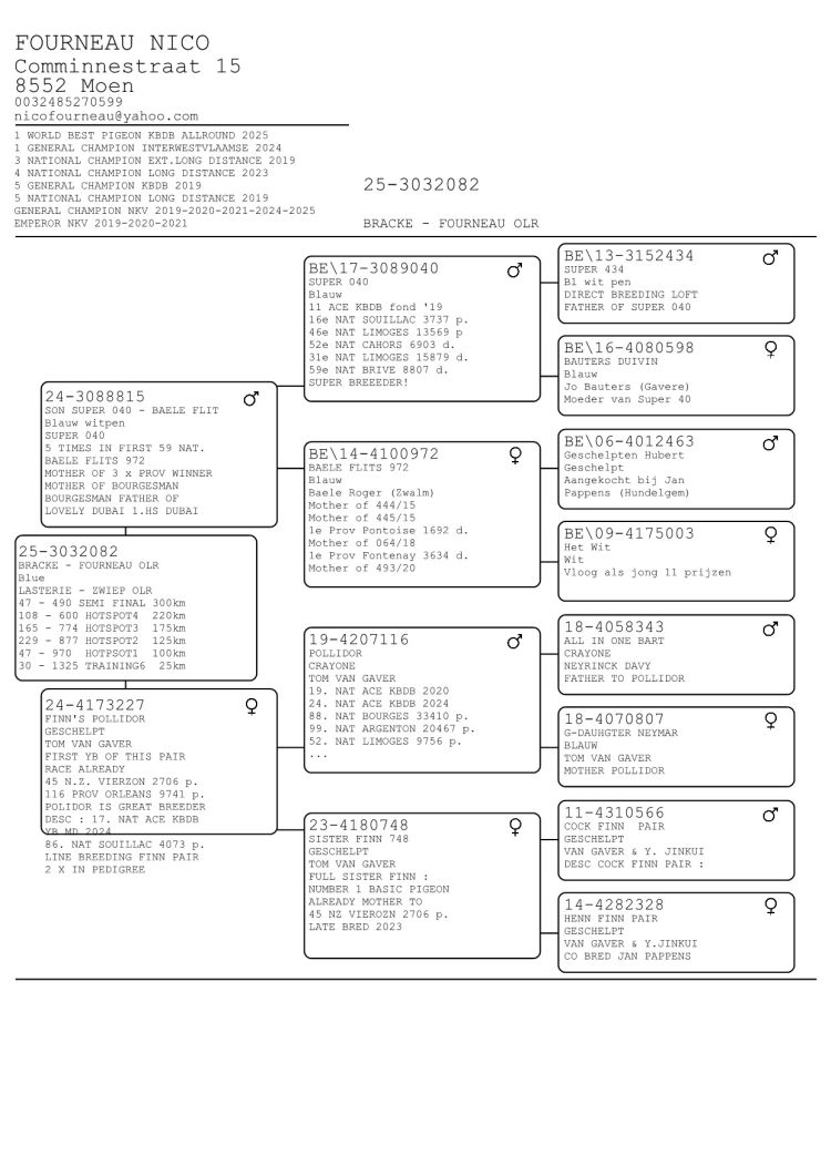 Owner: Bracke-Fourneau OLR (68º Final / Ace Pigeon:---º)
