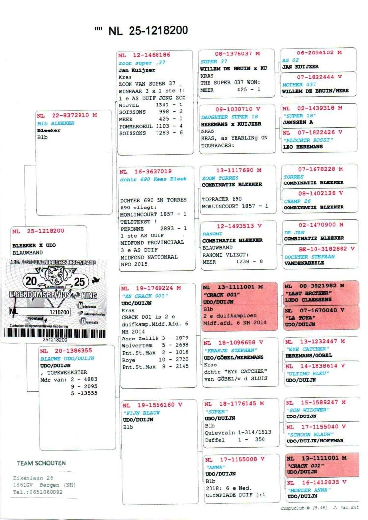 Owner: Team Schouten (35º Final / Ace Pigeon:50º)