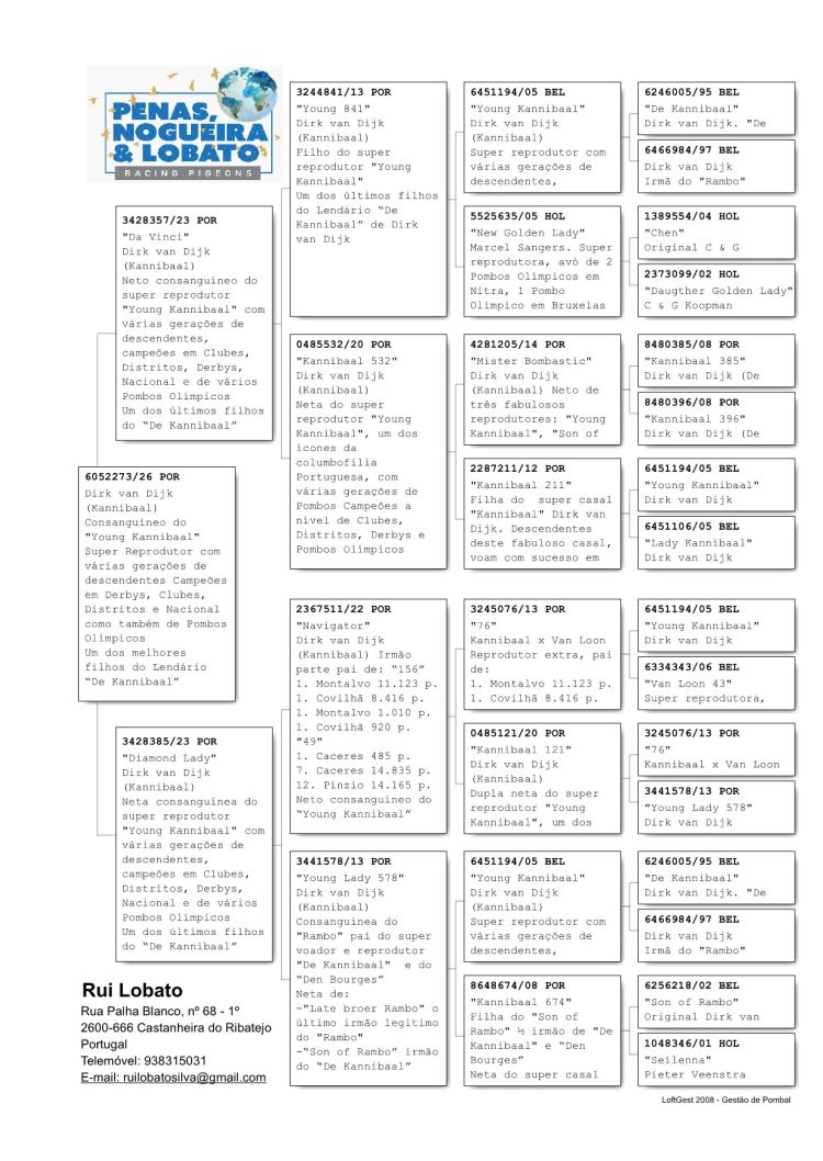 A sua descendência destaca-se ao mais alto nível, com resultados comprovados em Derbys, Clubes, Distritais e Nacionais, incluindo também Pombos Olímpicos.