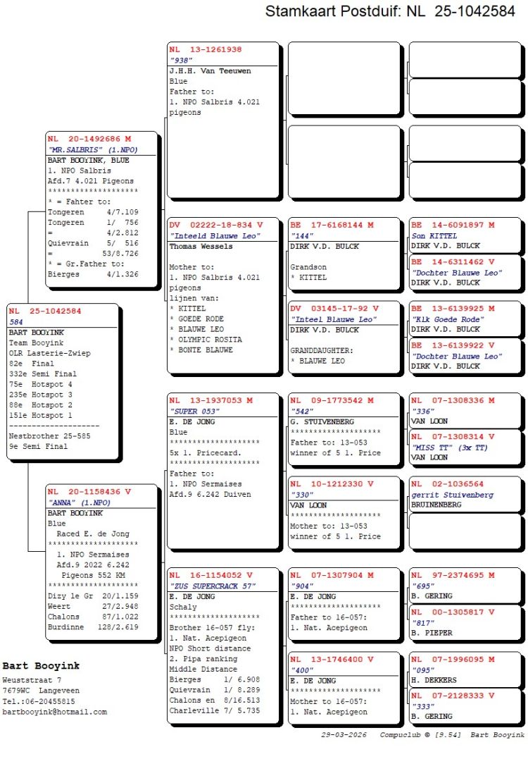 Owner: Team Booyink (82º Final / Ace Pigeon:---º)