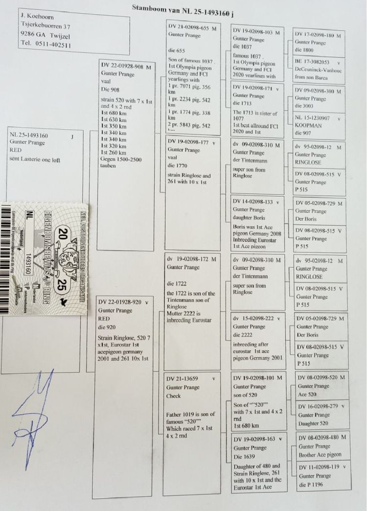 Owner: Jaap Koehoorn (71º Final / Ace Pigeon:---º)