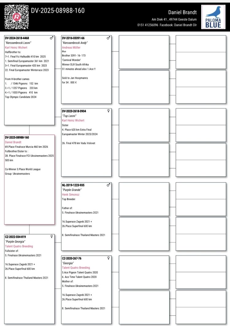 Owner: Daniel Brant (69º Final / Ace Pigeon:---º)