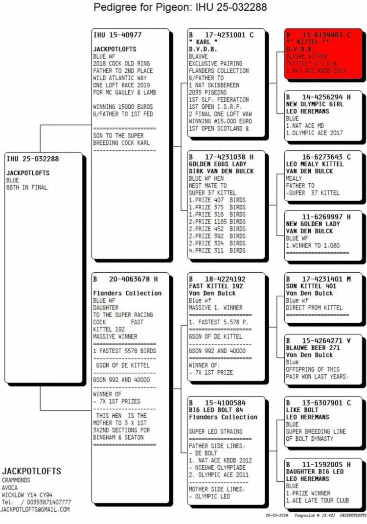 Owner: JackPot lofts 2 (66º Final / Ace Pigeon:47º)