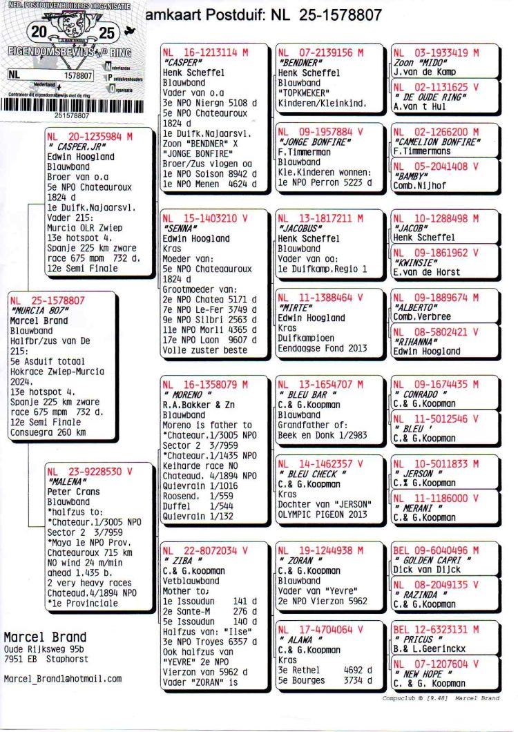 Owner: Hok Deijkers (98º Final / Ace Pigeon:---º)