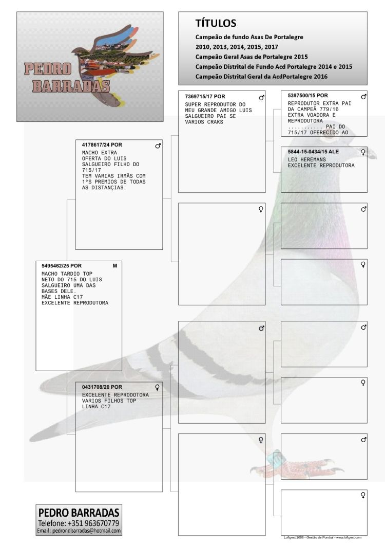Oficial Site GPLoft - Pigeons Auctions in Portugal Português | English