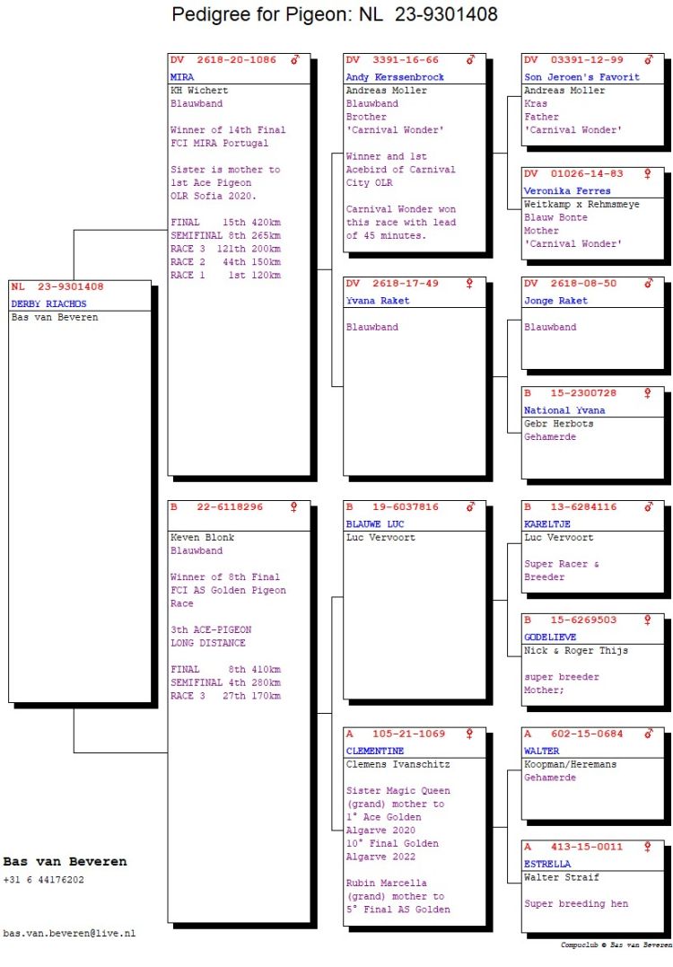 Proprietário: Bas van Beveren - A (413º Final / 175º Pombo Ás)
