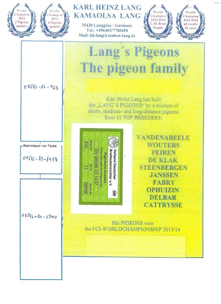 Proprietário: Karl-Heinz Lang - C (398º Final / 415º Pombo Ás)