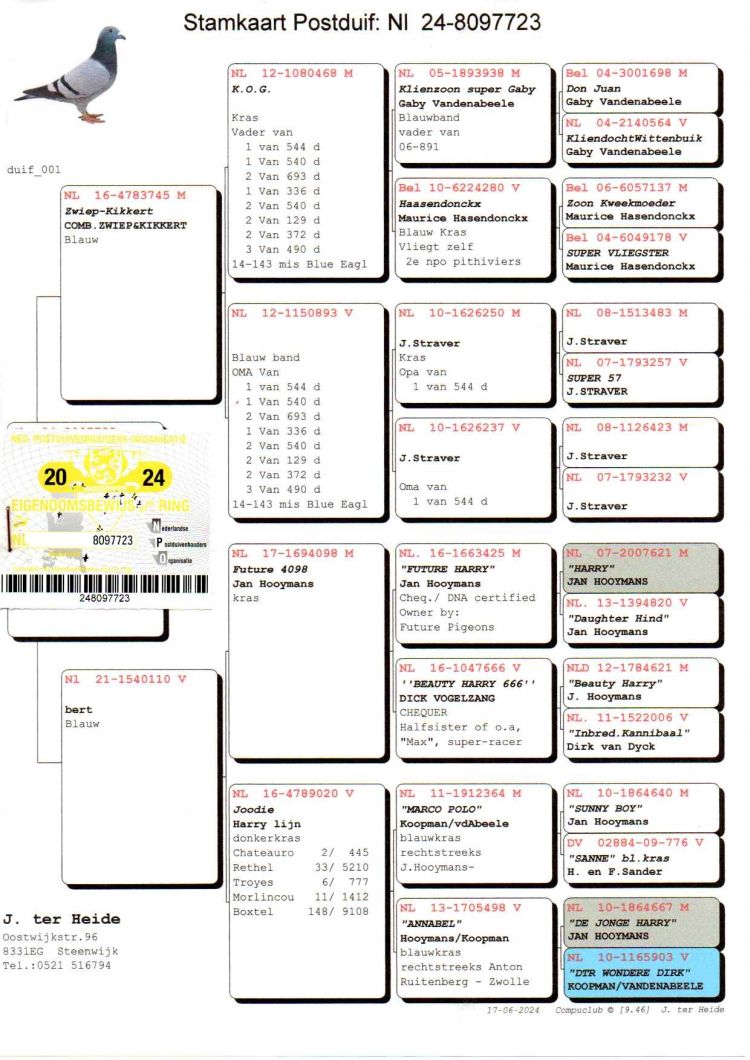 Proprietário: Ter Heide-Bloemert (136º Final / 133º Pombo Ás)