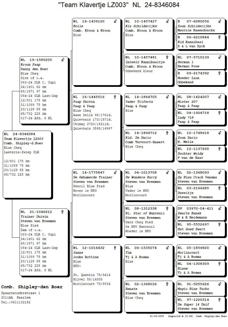 Proprietário: Team Klavertje pigeons (78º Final / 27º Pombo Ás)