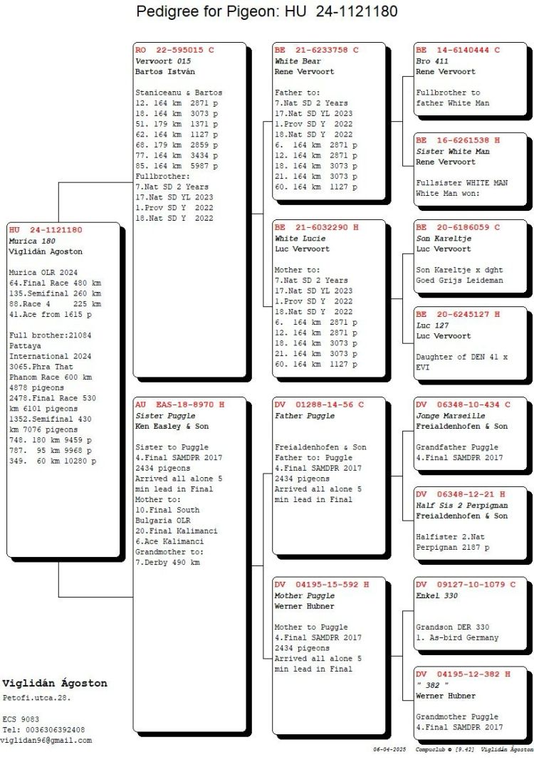 Proprietário: Viglidan Agoston B (64º Final / 41º Pombo Ás)
