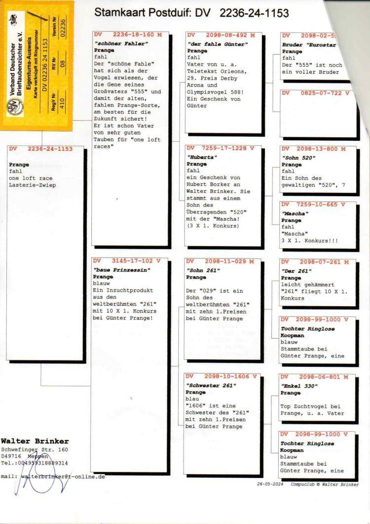 Proprietário: Schuurmans/Brinken (28º Final / 52º Pombo Ás)