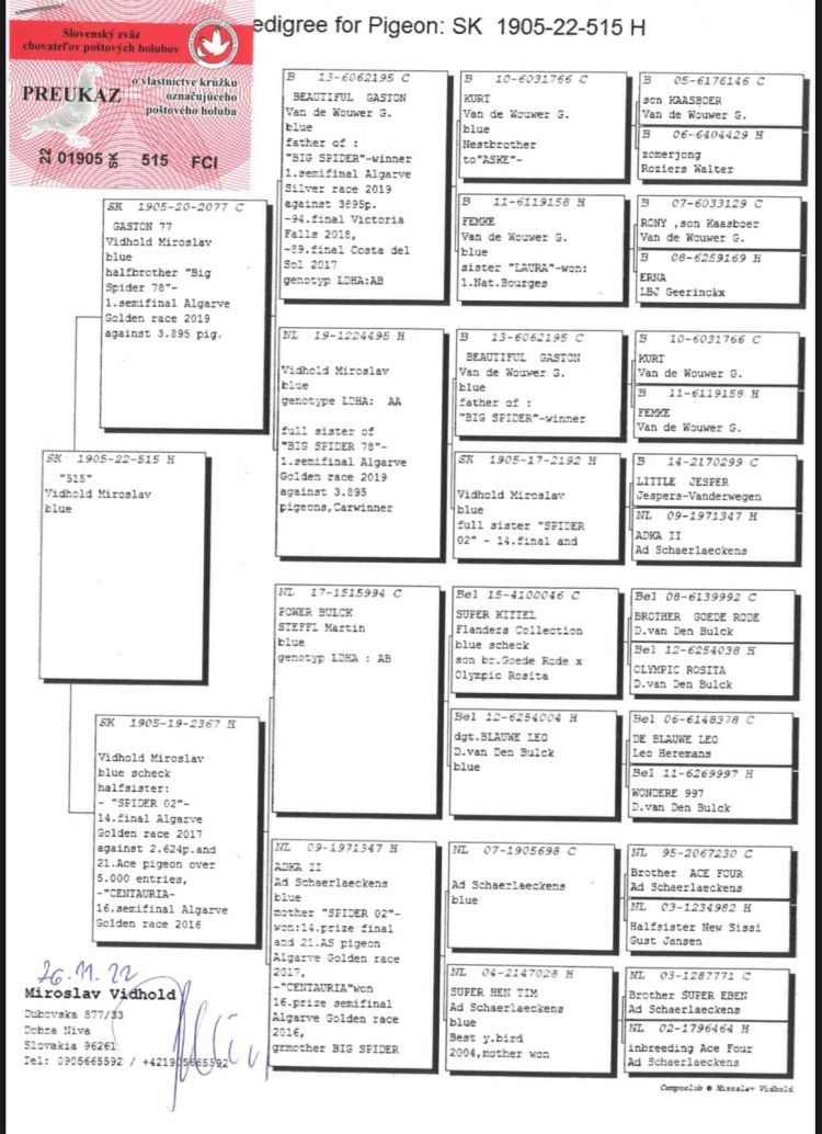 Proprietário: Herold Attila (93º Final / 32º Pombo Ás)