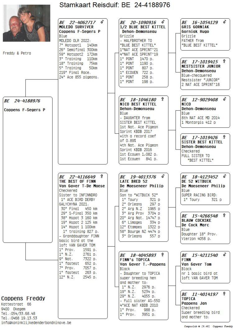 Proprietário: Coppens Freddy-Segers Petra (152º Final / 116º Pombo Ás)