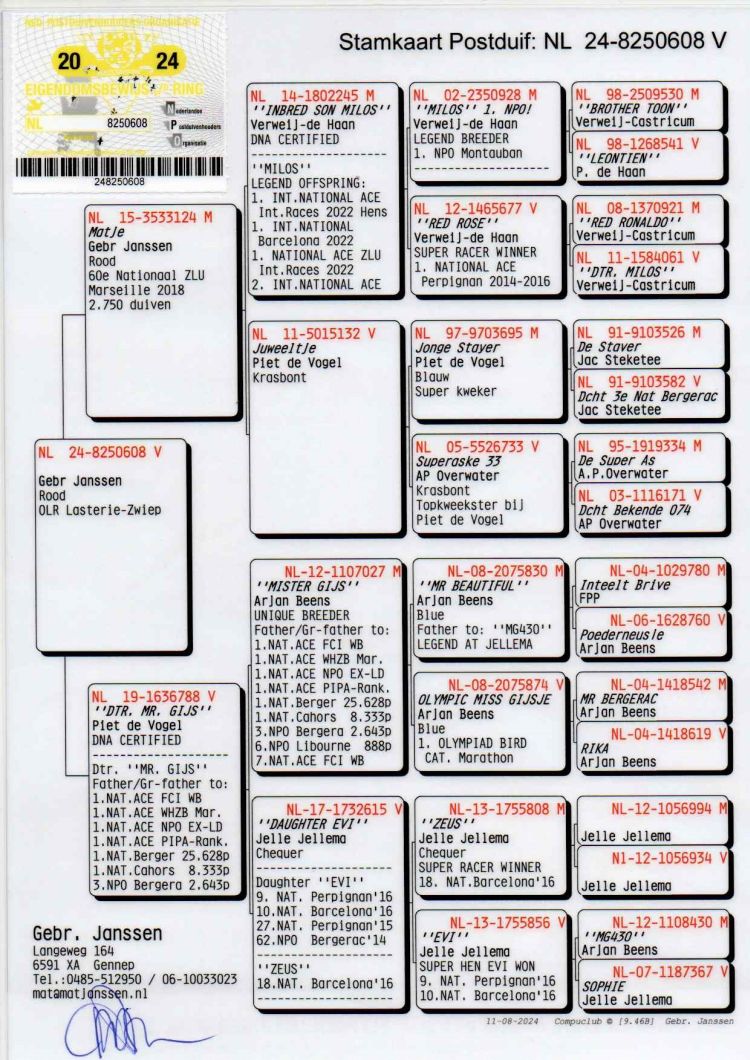 Proprietário: Team Flying Home (---º Final / ---º Pombo Ás)