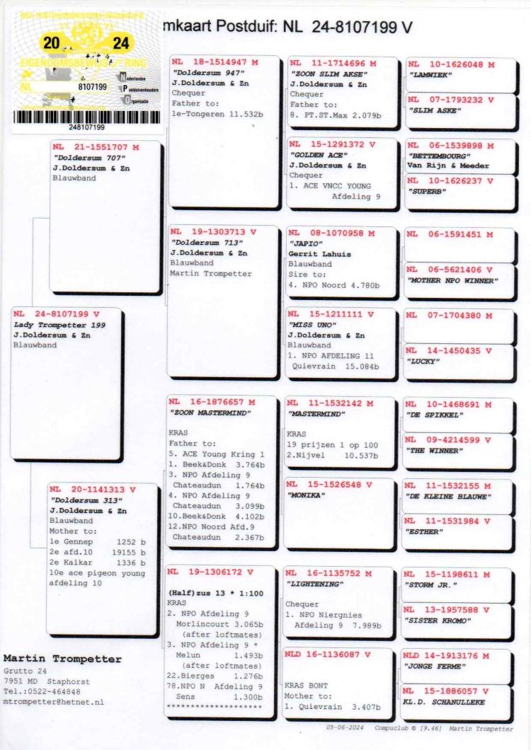 Proprietário: Hokse Trompetter (149º Final / 122º Pombo Ás)