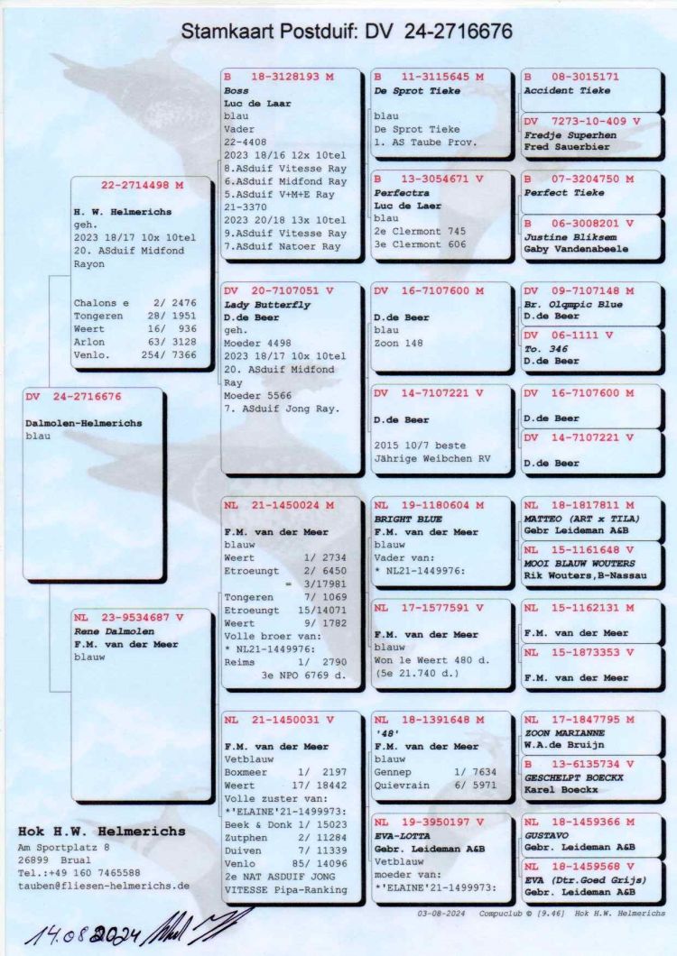 Proprietário: Team Dalmolen-Helmerichs (120º Final / 34º Pombo Ás)