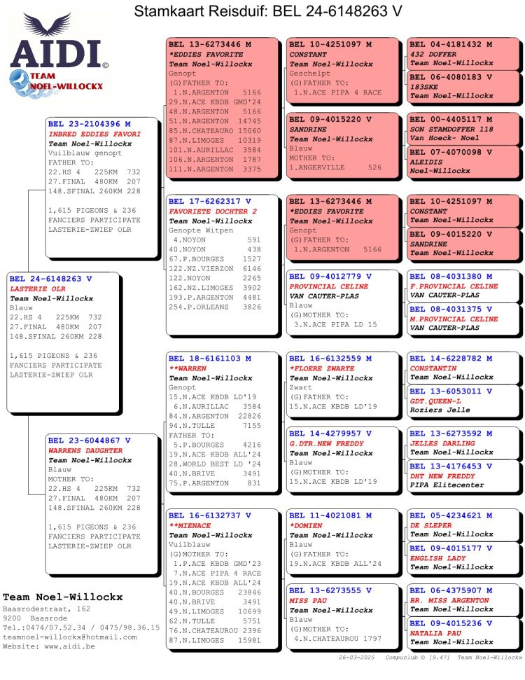 Proprietário: AIDI-Team Noel-Willockx. (27º Final / 43º Pombo Ás)