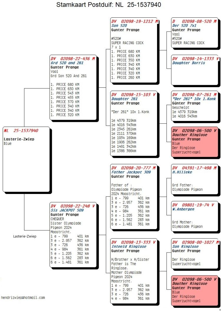 Proprietário: LASTERIE-ZWIEP PIGEONS