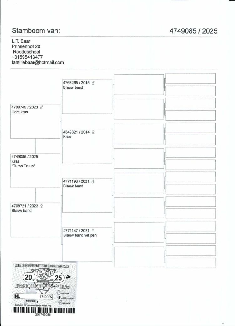 Proprietário: Team Oranje7 (140º Final / 265º Pombo Ás)