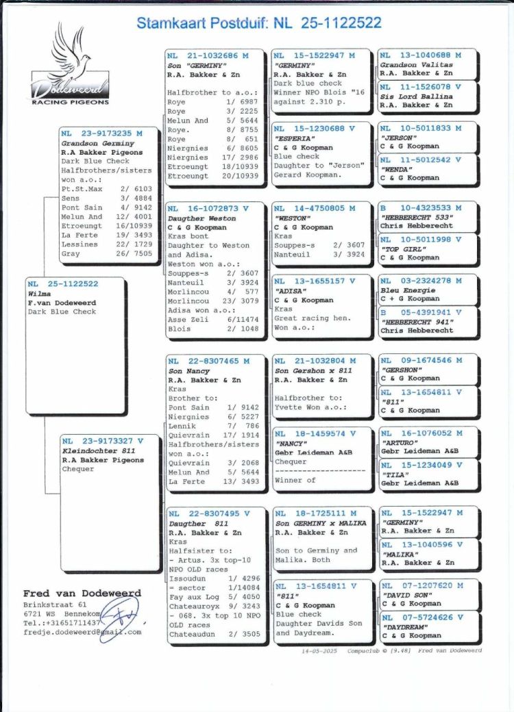 Proprietário: Team Vissers-Baris - B (115º Final / 134º Pombo Ás)