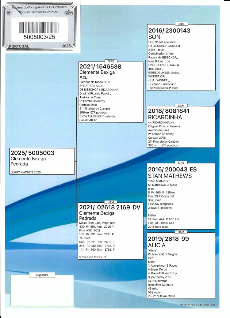 Proprietário: Serafim, Fernando e Nuno - A (119º Final / 72º Pombo Ás)