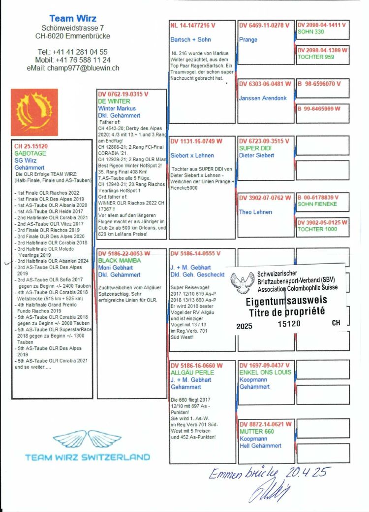 Proprietário: TEAM WIRZ - A (138º Final / 143º Pombo Ás)