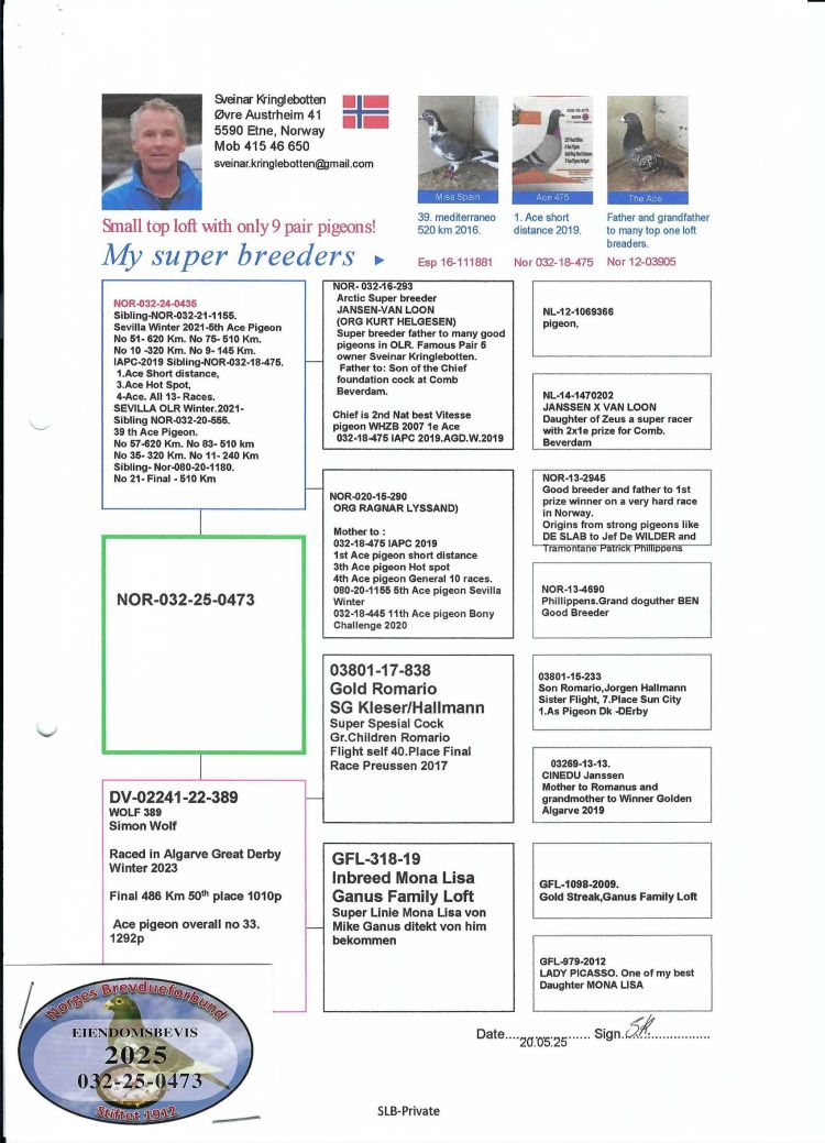 Proprietário: Sveinar Kringlebotten - B (118º Final / 119º Pombo Ás)