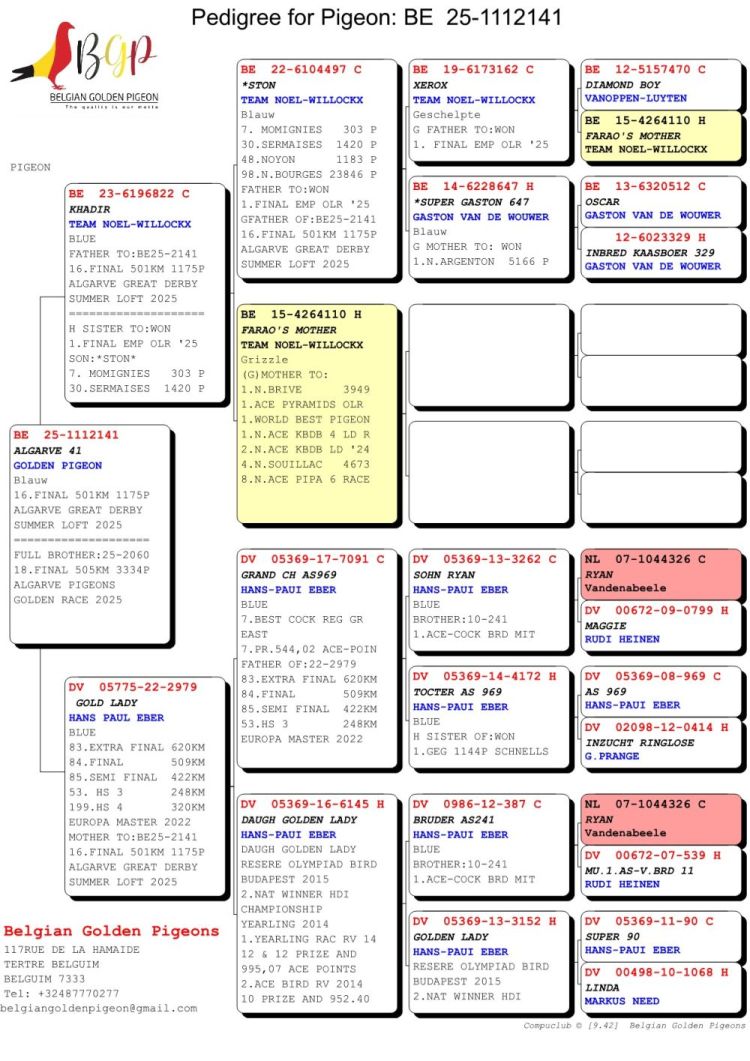 Proprietário: Belgian Golden Pigeon (16º Final / 121º Pombo Ás)