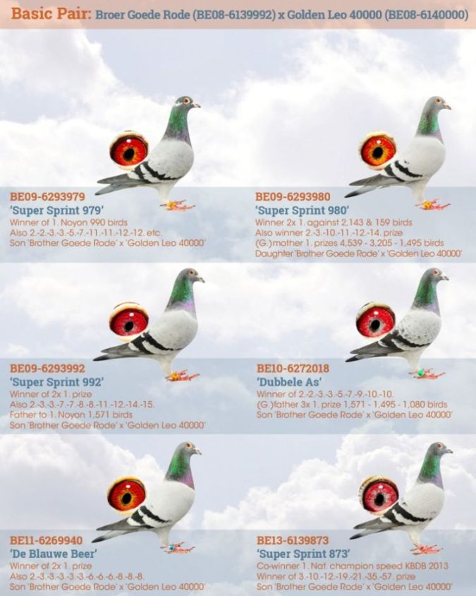 - 1-2-3-6-7-8-9-10-11-12-13-16-19 ECC. Against 1.170 pigeons 250km. Total basket 40 pigeons and 20 of them are in top 100 in 2022