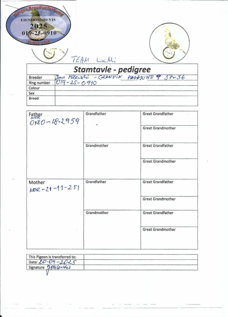Proprietário: Roy Inge Johnsen (425º Final / 485º Pombo Ás)