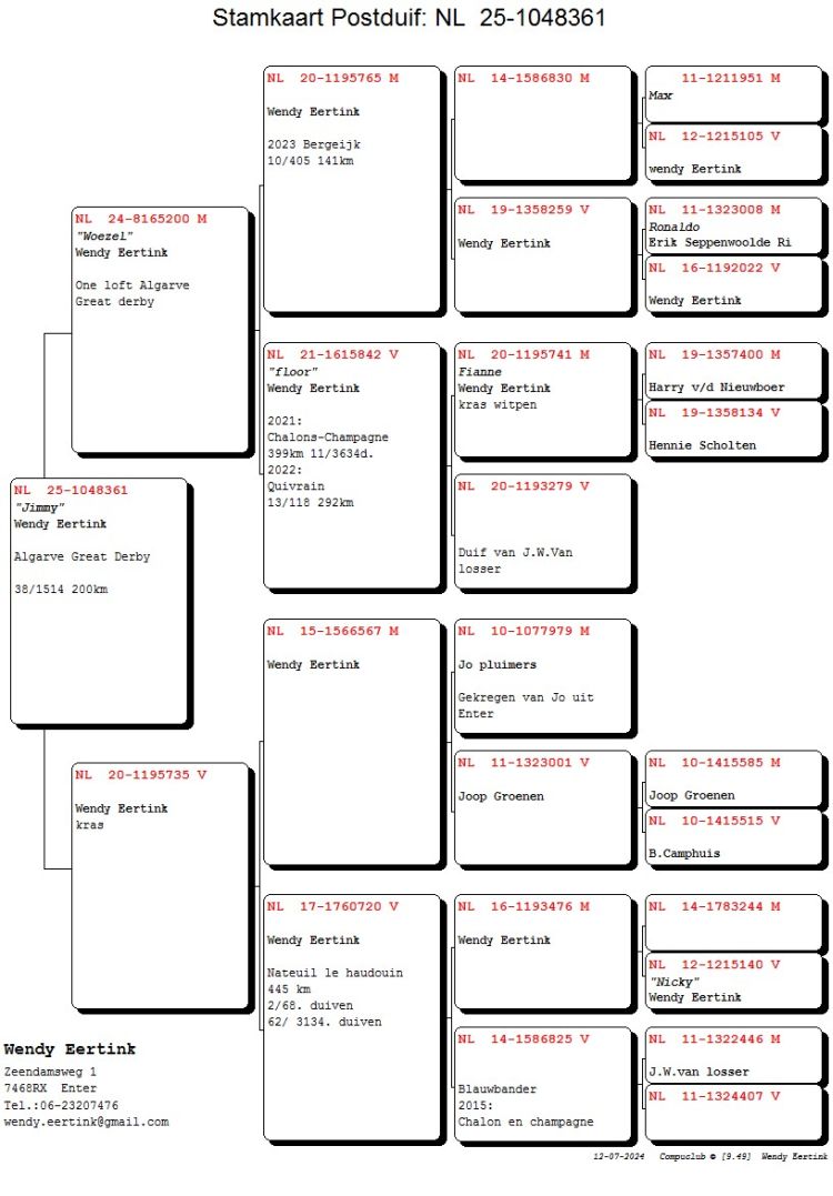 Proprietário: Wendy Eertink - C (329º Final / 276º Pombo Ás)