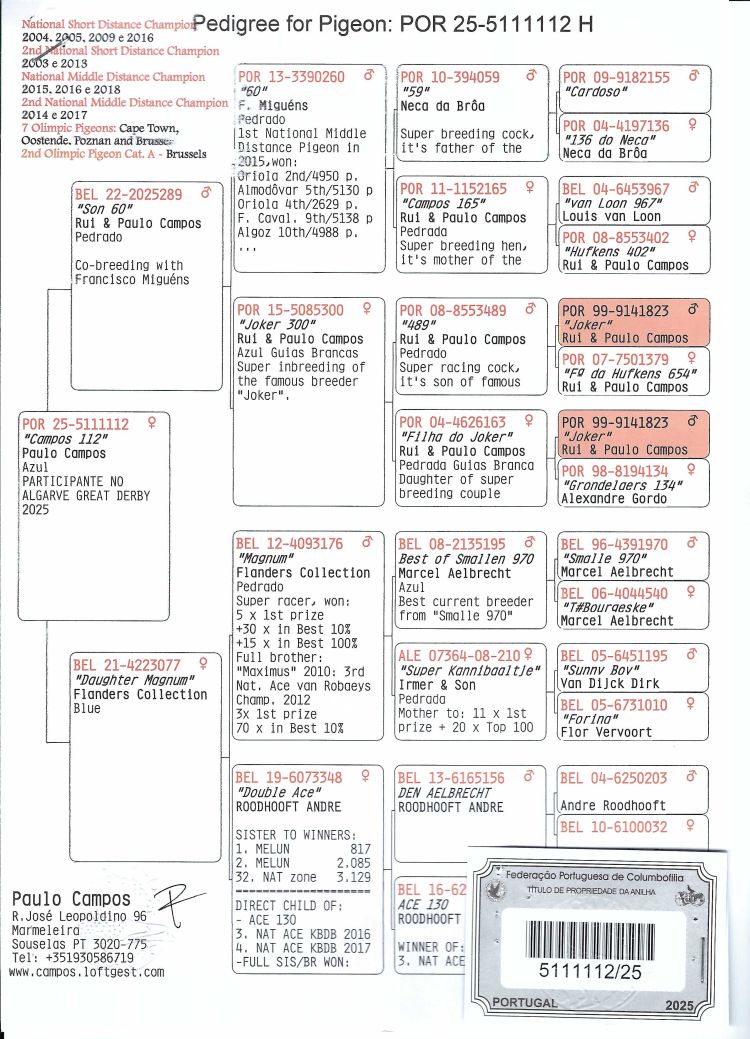 Proprietário: Team H. u. M. (236º Final / 155º Pombo Ás)