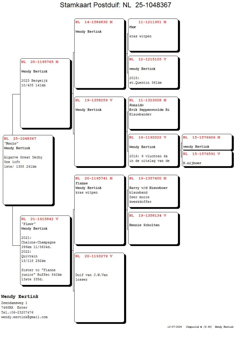Proprietário: Wendy Eertink - C (329º Final / 276º Pombo Ás)