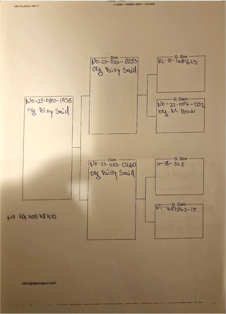 Proprietário: SG. Bylo Zoryan. OLR. Ukraine Master (307º Final / 135º Pombo Ás)