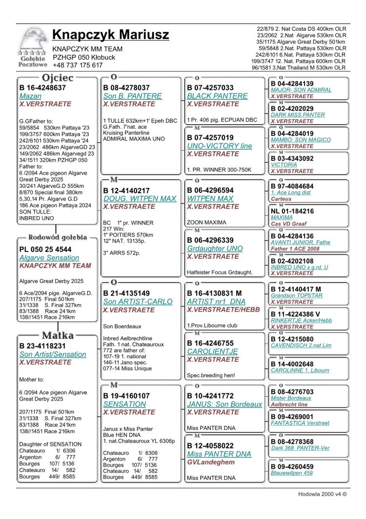 Proprietário: Knapczyk MM Team - D (207º Final / 6º Pombo Ás)