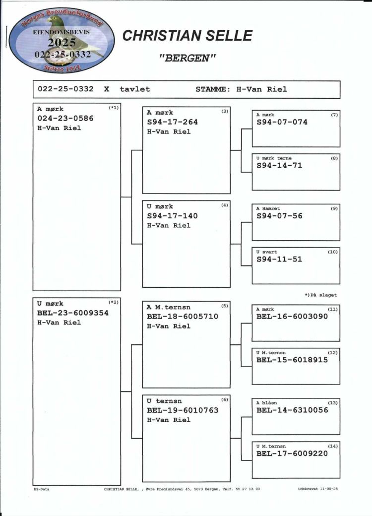 Proprietário: C. Van Selle - A (471º Final / 419º Pombo Ás)