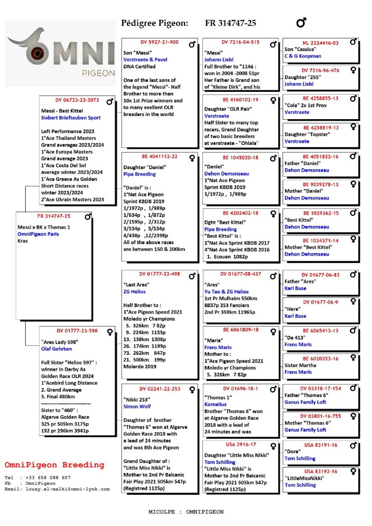 Proprietário: SG. Bylo Zoryan. OLR. Ukraine Master (307º Final / 135º Pombo Ás)