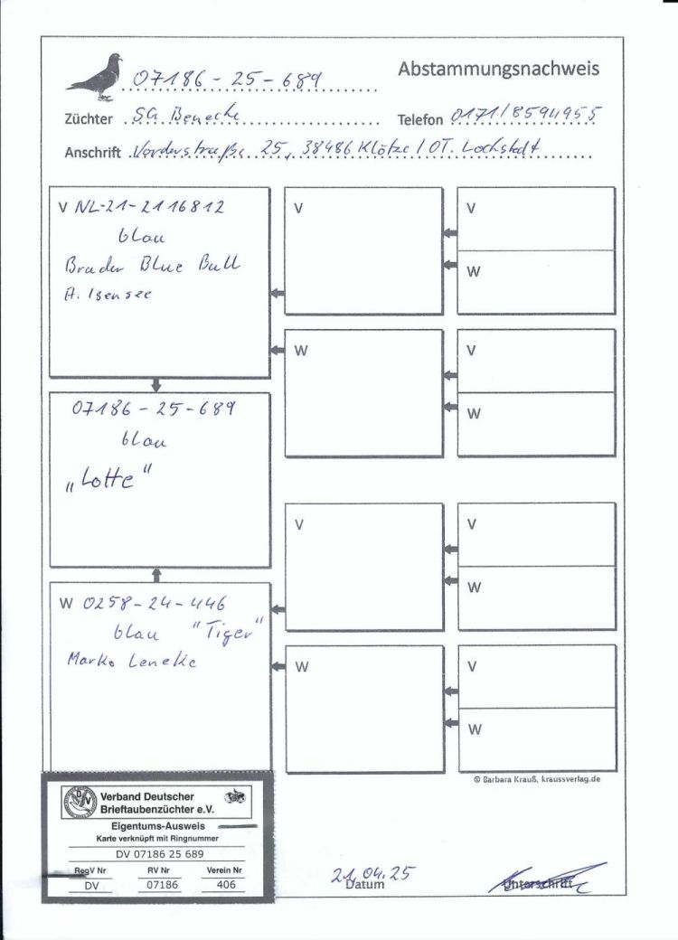 Proprietário: Team Altmaerker - A (682º Final / ---º Pombo Ás)