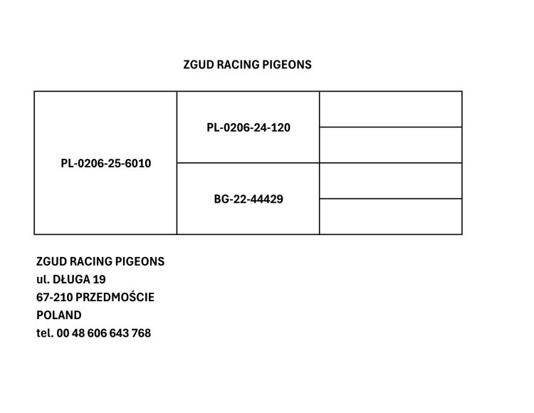 Proprietário: Zgud Racing Pigeons - B (497º Final / 465º Pombo Ás)