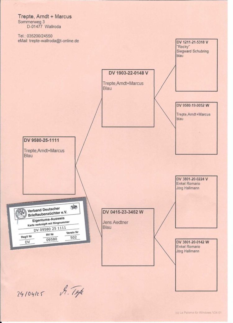Proprietário: Team Andreas Schaefer / Marco Voss - B (656º Final / 1442º Pombo Ás)