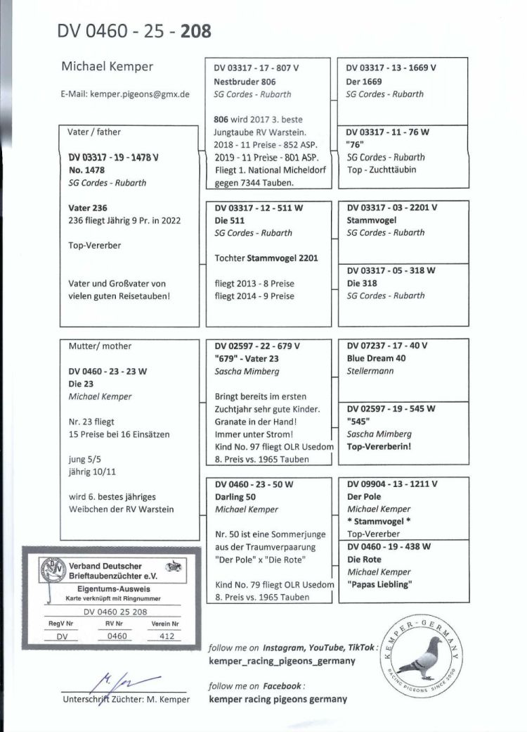 Proprietário: Team Andreas Schaefer / Marco Voss - B (656º Final / 1442º Pombo Ás)