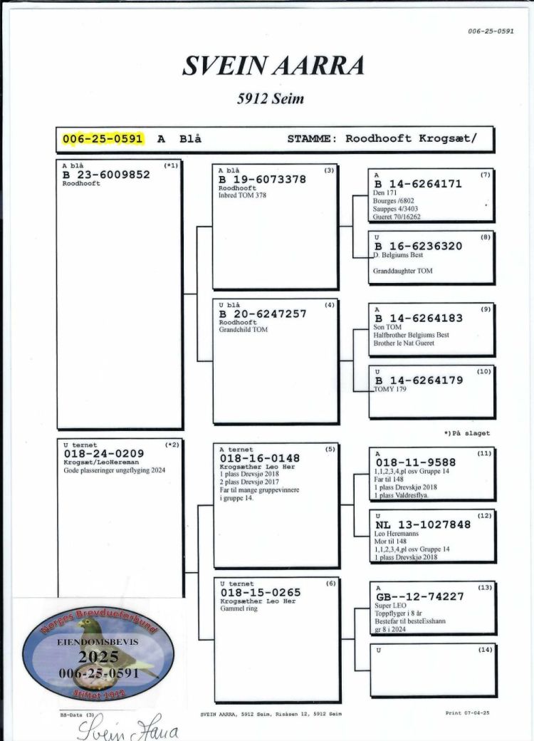 Proprietário: Kringlebotten - Seberg - B (644º Final / 1182º Pombo Ás)