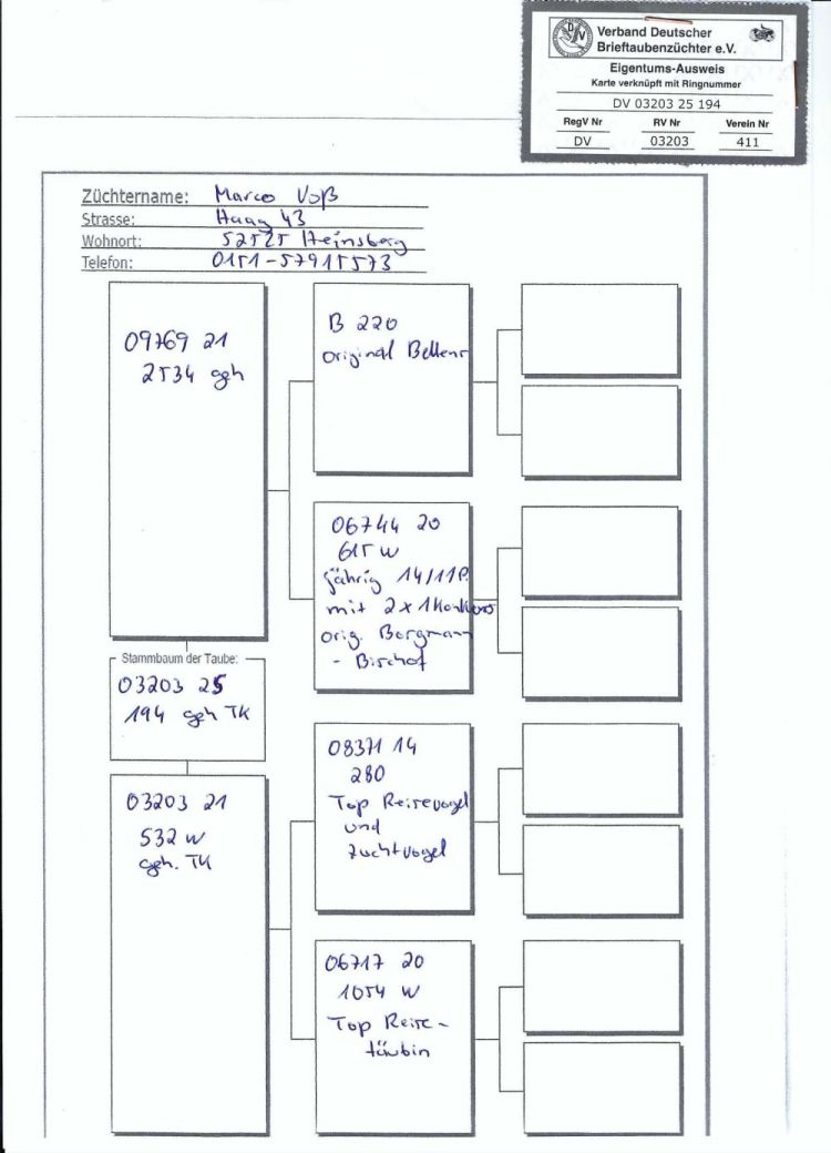 Proprietário: Team Behring, Willi + Paul (559º Final / 470º Pombo Ás)