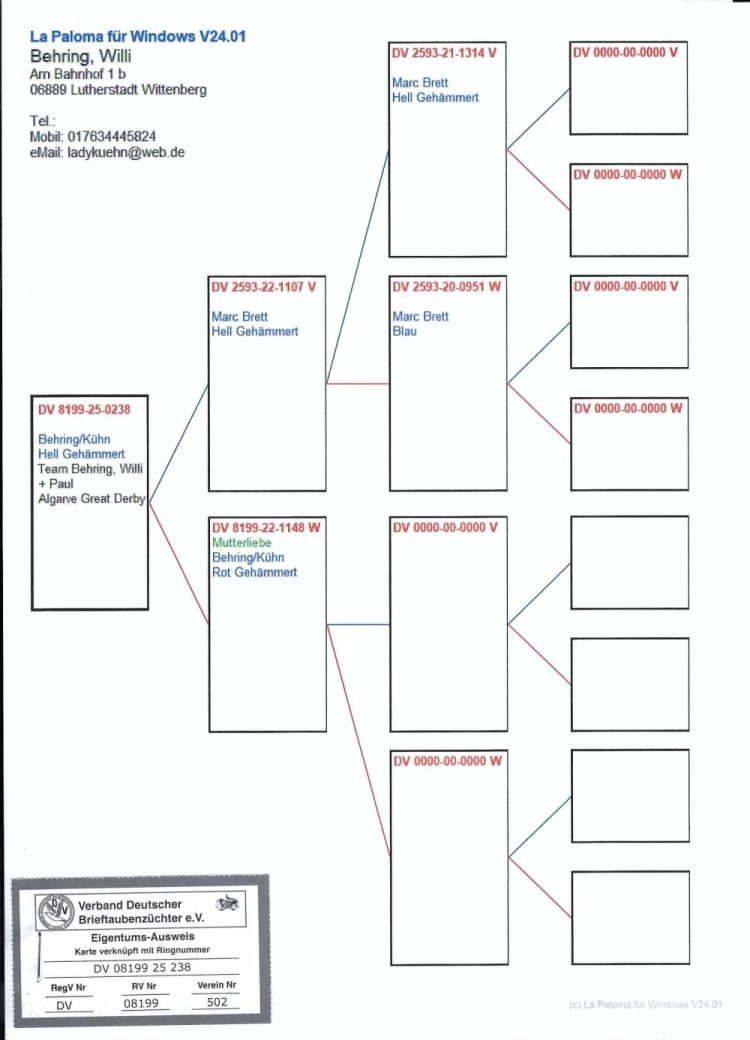 Proprietário: Team Behring, Willi + Paul (559º Final / 470º Pombo Ás)