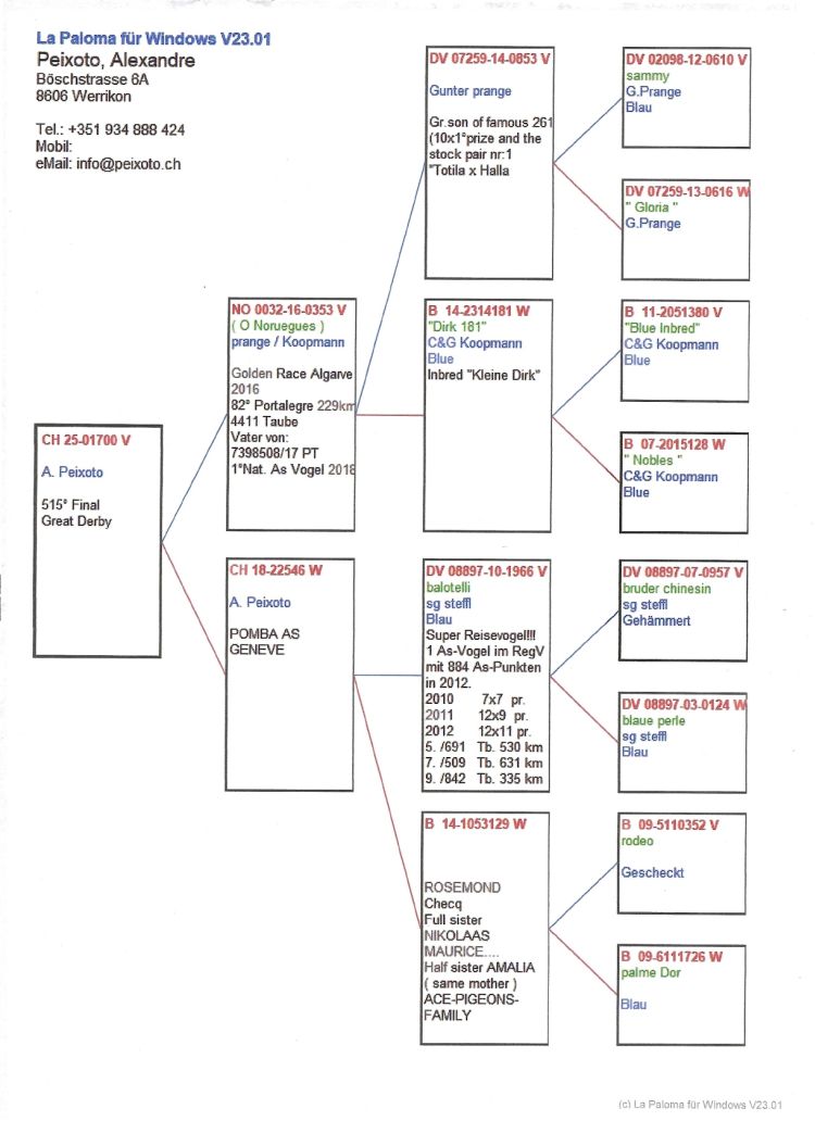 Proprietário: Team Behring, Willi + Paul (559º Final / 470º Pombo Ás)