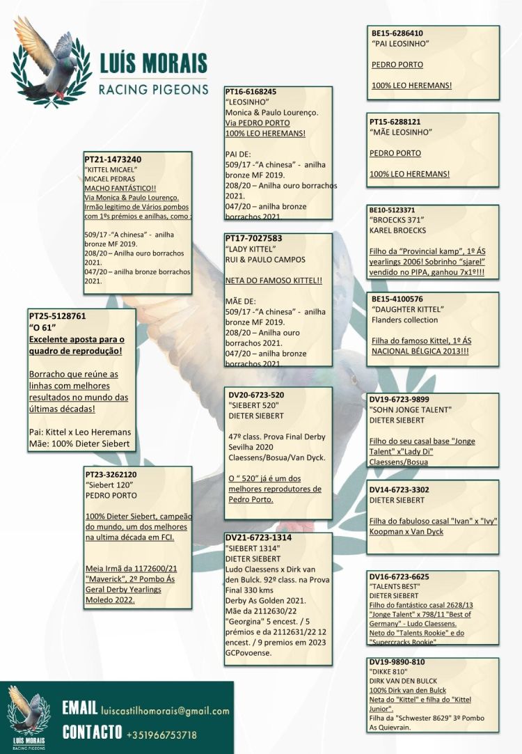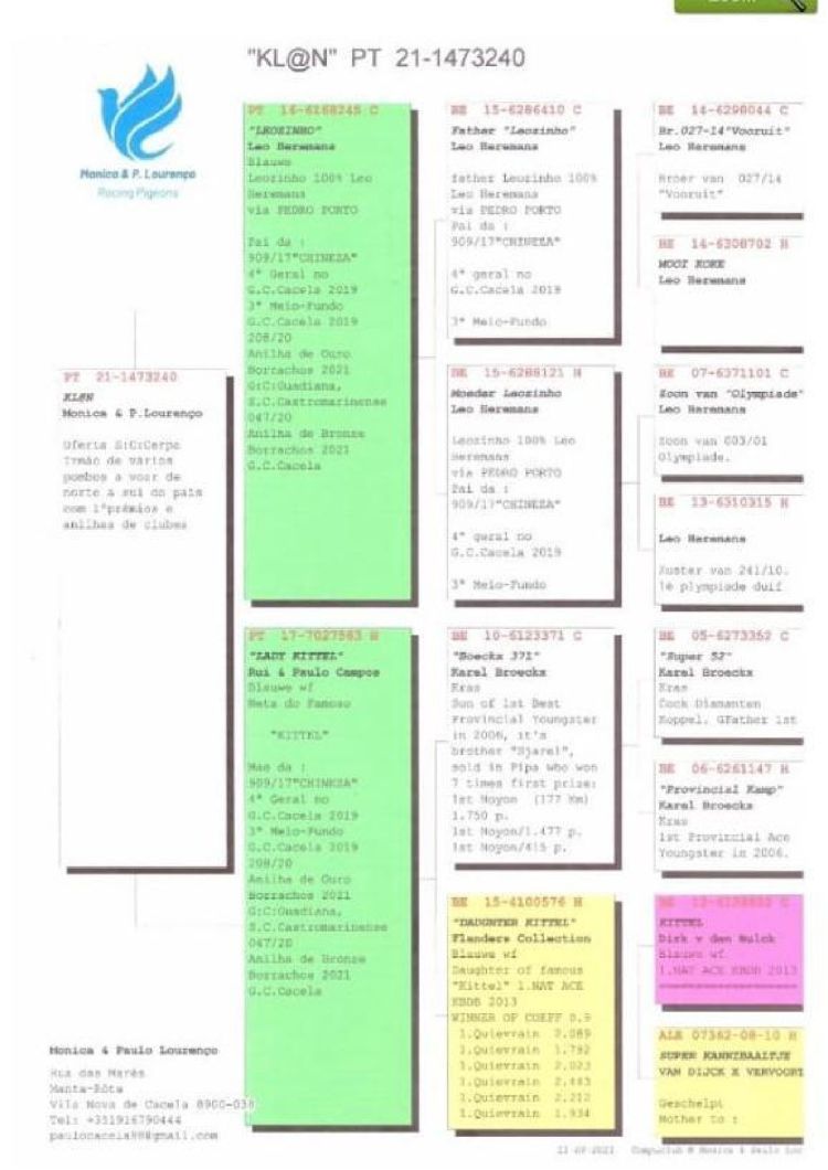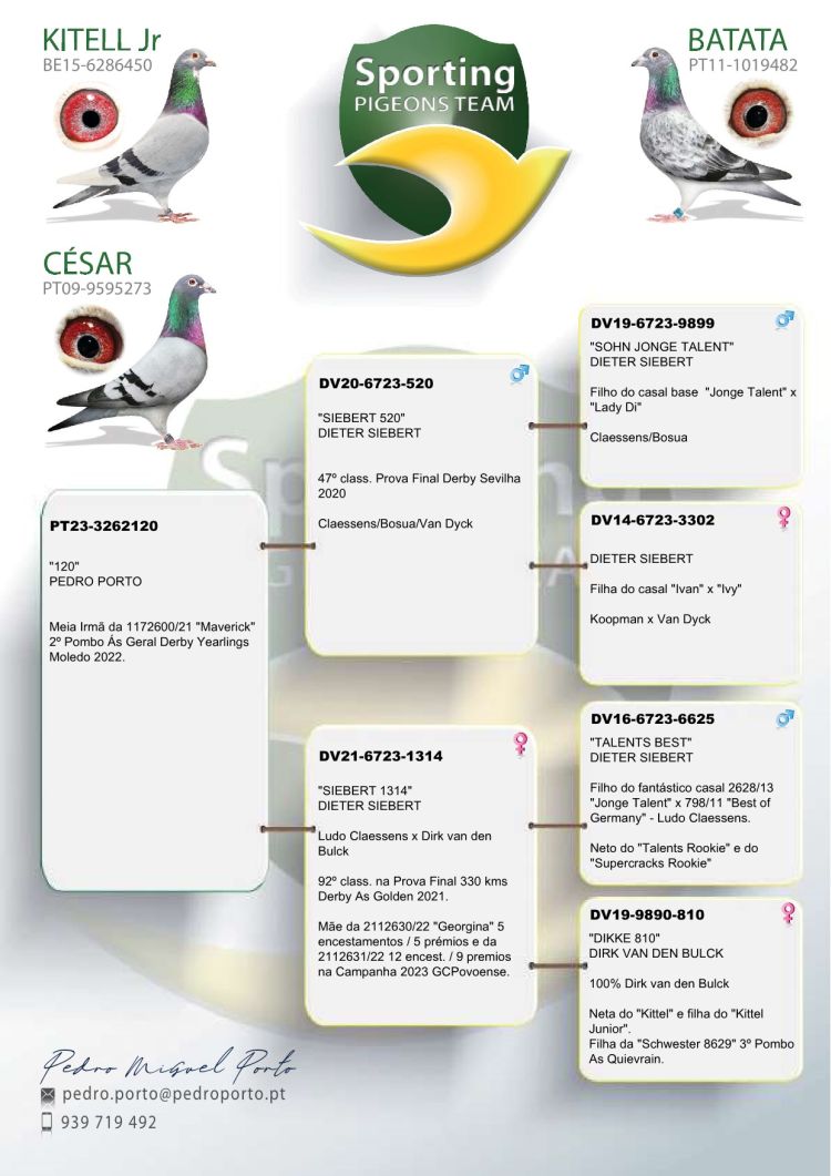 Filha do “520”, já um dos melhores reprodutores de Pedro Porto, neto casal base "Jonge Talent" x"Lady Di" de Dieter Siebert.